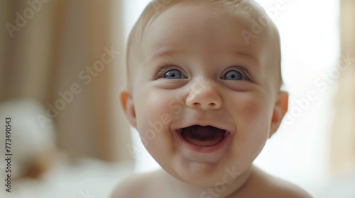 Close up shot of a baby with striking blue eyes. Perfect for family and parenting themes