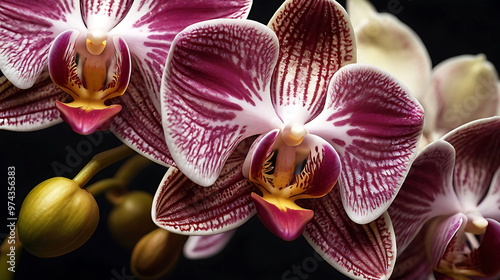 Close up shot of a vibrant orchid with rich colors ,captured in a hyper-realistic style