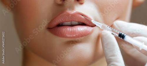 Close Up Shot of Skilled Master Performing Lip Injection Procedure on Beautiful Model in Clinic