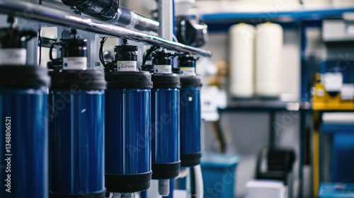 Close up shows water filtration unit, standing ready and efficient, ensuring clean water with it is disassembling process