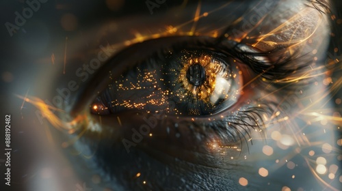 Close up sparkles in eye. A close-up shot of a human eye with shimmering sparkles.