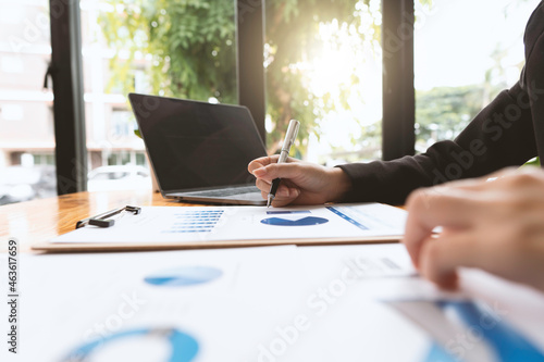 Close up view of bookkeeper or financial inspector hands making report, calculating or checking balance. Home finances, investment, economy, saving money or insurance concept.