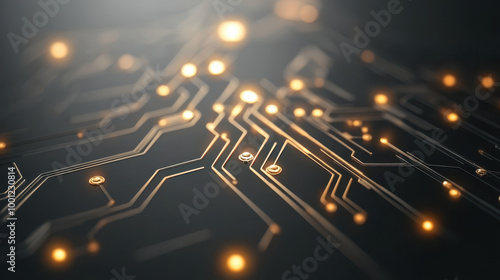 close up view of circuit board showcasing intricate pathways and glowing lights, symbolizing advanced technology and digital innovation. image captures essence of modern electronics and connectivity