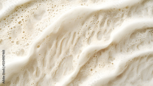 close up view of creamy, frothy texture resembling ocean waves, creating abstract pattern. image captures smooth, flowing lines and bubbles, evoking sense of calm and movement