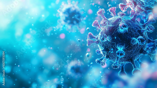 close up view of influenza virus showcases its intricate round structure, highlighting detailed surface features and vibrant colors. This evokes sense of scientific exploration and discovery