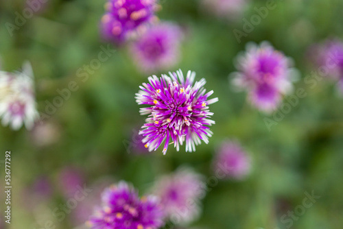 Close up,front view purple flowers in the garden on green leaf background. Purple flowers on green background, selective focus on purple flowers in front.Beautiful purple flowers.
