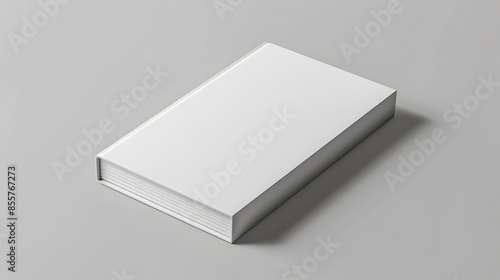 Closed blank hardback book mockup on gray concrete background, top view. Mockup book, notepad. Blank white book for your design. 3d render.