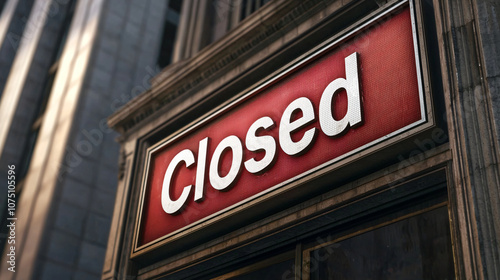 Closed sign on building, indicating temporary unavailability and stillness