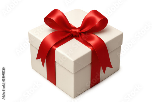 Closed white gift box tied with shiny red ribbon on transparent background, perfect for celebrations and special occasions
