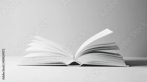 Closed white hardcover book with pages fanned open, set against a minimalist plain white background, showcasing its clean lines and texture.