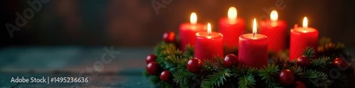 Close-up, Advent wreath with flickering candlelight , candlelight, faith