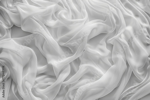 Close-up black and white photo of a white fabric. Ideal for backgrounds or textures