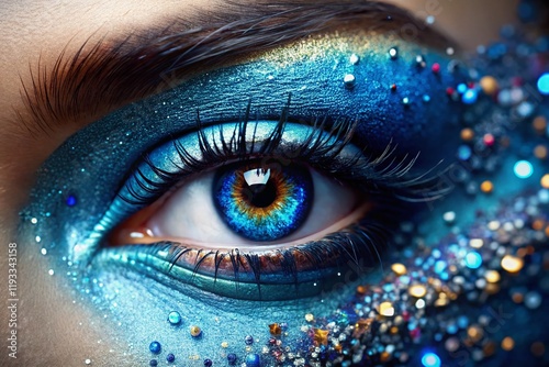Close-up Blue Glitter Eye Makeup - Beauty Fashion Stock Photo
