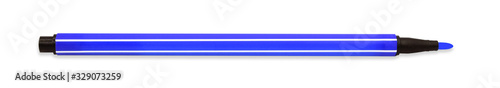 Closeup blue marker pen isolated on white background with clipping path, Stationery with colourful pen