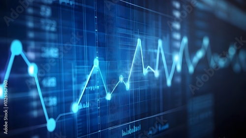 Close-up digital screen showing line graph with upward and downward trends, symbolizing cancer research progress and setbacks, medical charts and scientific symbols in background