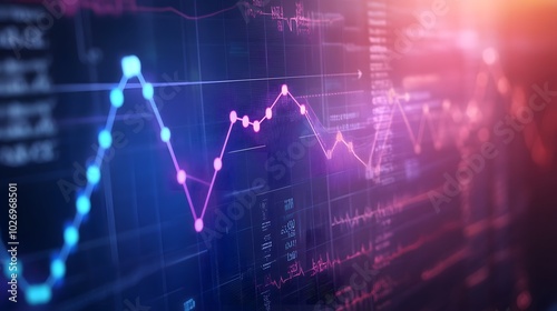 Close-up digital screen showing line graph with upward and downward trends, symbolizing cancer research progress and setbacks, medical charts and scientific symbols in background