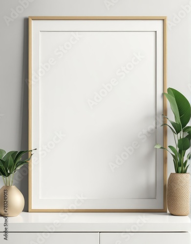 Close-up frame mockup in room interior, 3d rendering
