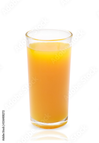 Closeup glass of fresh orange juice isolated on white background with clipping path