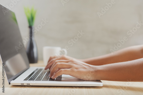 close-up hand typing on keyboard computer