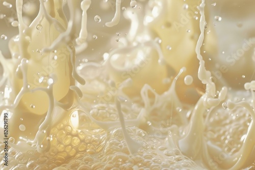 Closeup highspeed photography of fresh milk splashing in a dynamic and fluid motion. Capturing the creamy detail and purity of this dairy beverage
