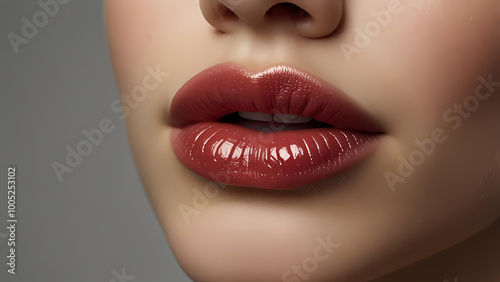 close-up image of a woman's lips, focusing on the soft texture, natural contours, and subtle shine