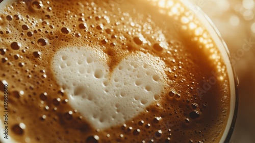 Closeup Latte Art HeartShaped Coffee Foam Texture Bubbles