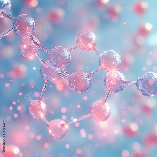 Close-Up Molecular DNA Structure with Vibrant Red and Purple Molecules