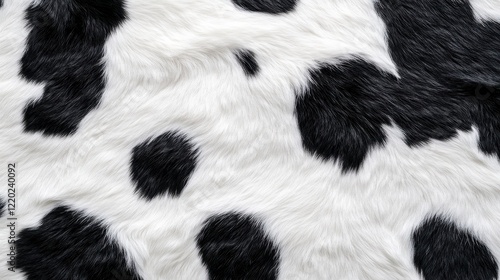 Close-up of a black and white cowhide fur pattern showcasing natural textures.