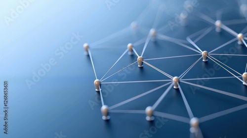 Close-up of a blue abstract digital network with nodes and connections on a modern tech surface background.