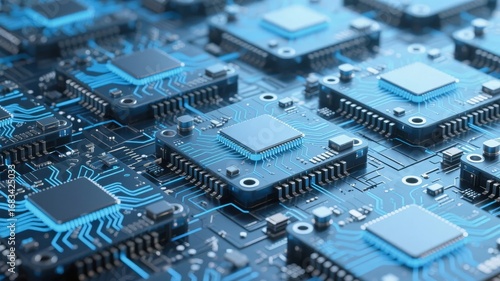 Close-up of a Blue Circuit Board with Integrated Circuits