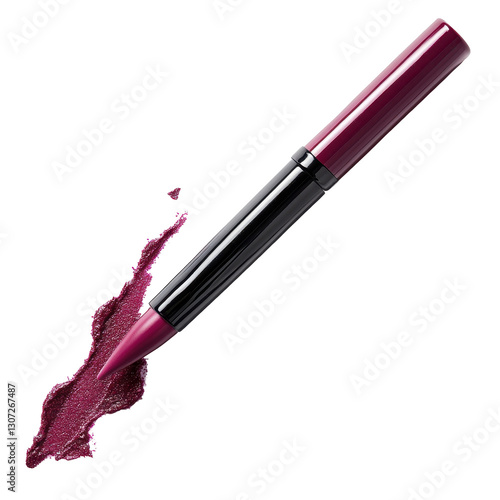Close-up of a bold pink lipstick and smudge on a background. transparent background