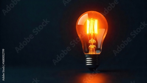 Close-up of a bright, shining lightbulb illuminating a dark background, symbolizing a brilliant idea or innovative solution , electric, concept