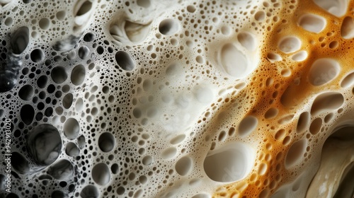 Close-up of a bubbly, light-colored surface with varying shades and textures