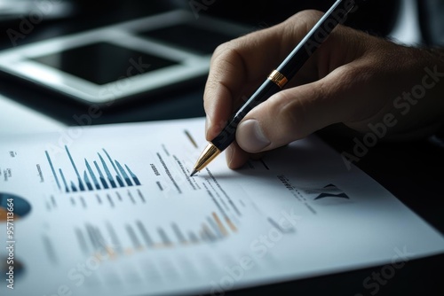 Closeup of a business plan with competitor analysis and market trends, strategic insights