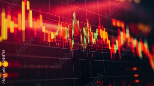 Close-up of a candlestick chart on a digital screen, displaying the stock market or an unknown background in the colors of the German flag.