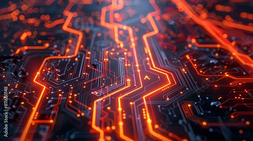 Close-up of a circuit board with orange glowing lines