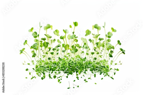 Close-up of a cluster of microgreens against a white background. Generative AI