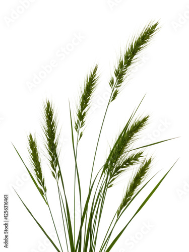 Close-up of a cluster of vibrant green grass stalks against a transparent background