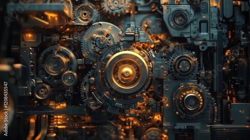 Close-up of a Complex Steampunk Machine with Gears and Cogs