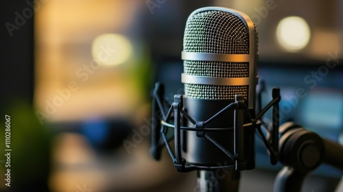 Close-up of a Condenser Microphone in a Recording Studio