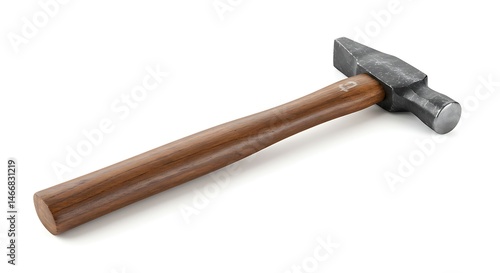 Close-up of a cross peen hammer with a wooden handle on a white background