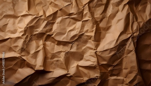 Close-up of a crumpled brown paper texture that is ideal for design purposes or backgrounds, showcasing creases and folds for aesthetic and creative use.