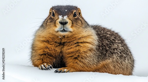 Close-Up of a Cute Squirrel on Snowy Background in Winter
