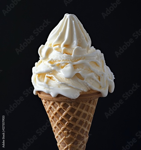 Close-up of a delicious vanilla ice cream cone, showcasing its creamy texture and delightful swirls.