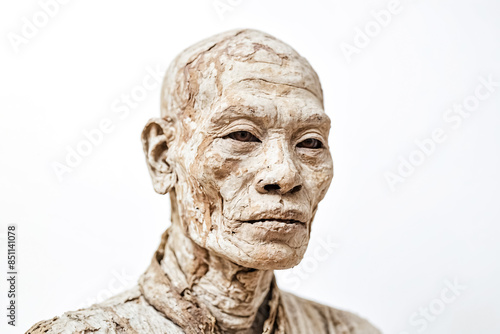 Close-up of a Detailed Clay Sculpture of a Man's Face