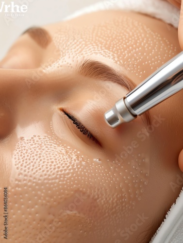 Closeup of a face during a microdermabrasion treatment to stimulate collagen, microdermabrasion, skin renewal