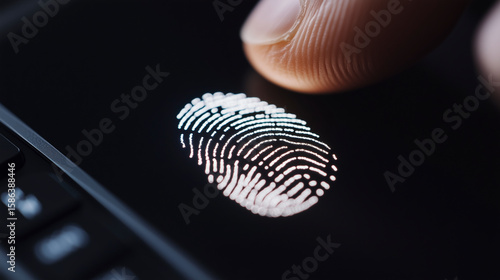 Close-up of a fingertip engaging a radiant fingerprint login icon
