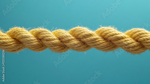 close-up of a fraying rope breaking in the middle, held tightly by two opposing hands. Symbolizes conflict, tension, division, struggle, resilience, or the breaking point in relationships