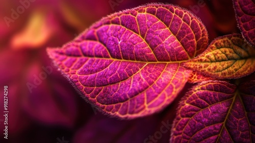 Close-up of a Fuchsia and Yellow Leaf with Detailed Veins