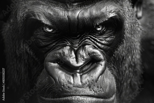 Closeup of a Futuristic Angry Gorilla Face Glaring Dangerously at Camera